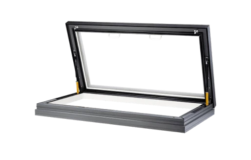 Con dos hojas que se abren hacia fuera, perfectas para cubiertas planas o inclinadas.